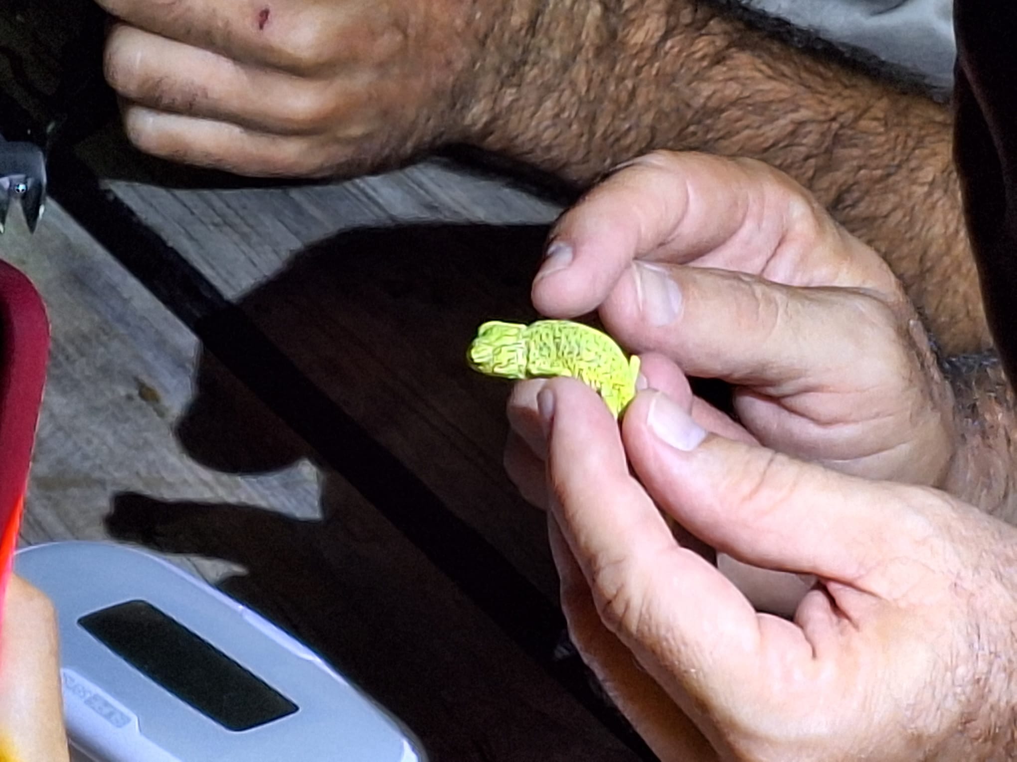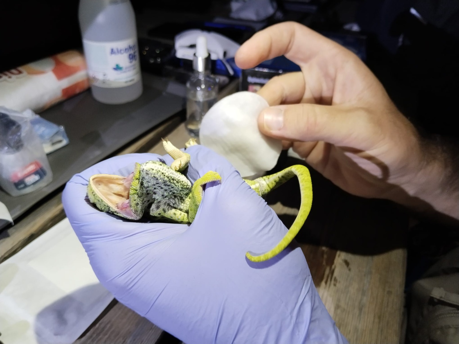 La toma de datos biométricos, el pesaje y el marcaje se realizaron siguiendo estrictos protocolos de bienestar animal. Una vez finalizado el proceso, los tres camaleones fueron devueltos a su lugar de localización sin sufrir ningún tipo de daño, garantizando la continuidad de su vida silvestre.