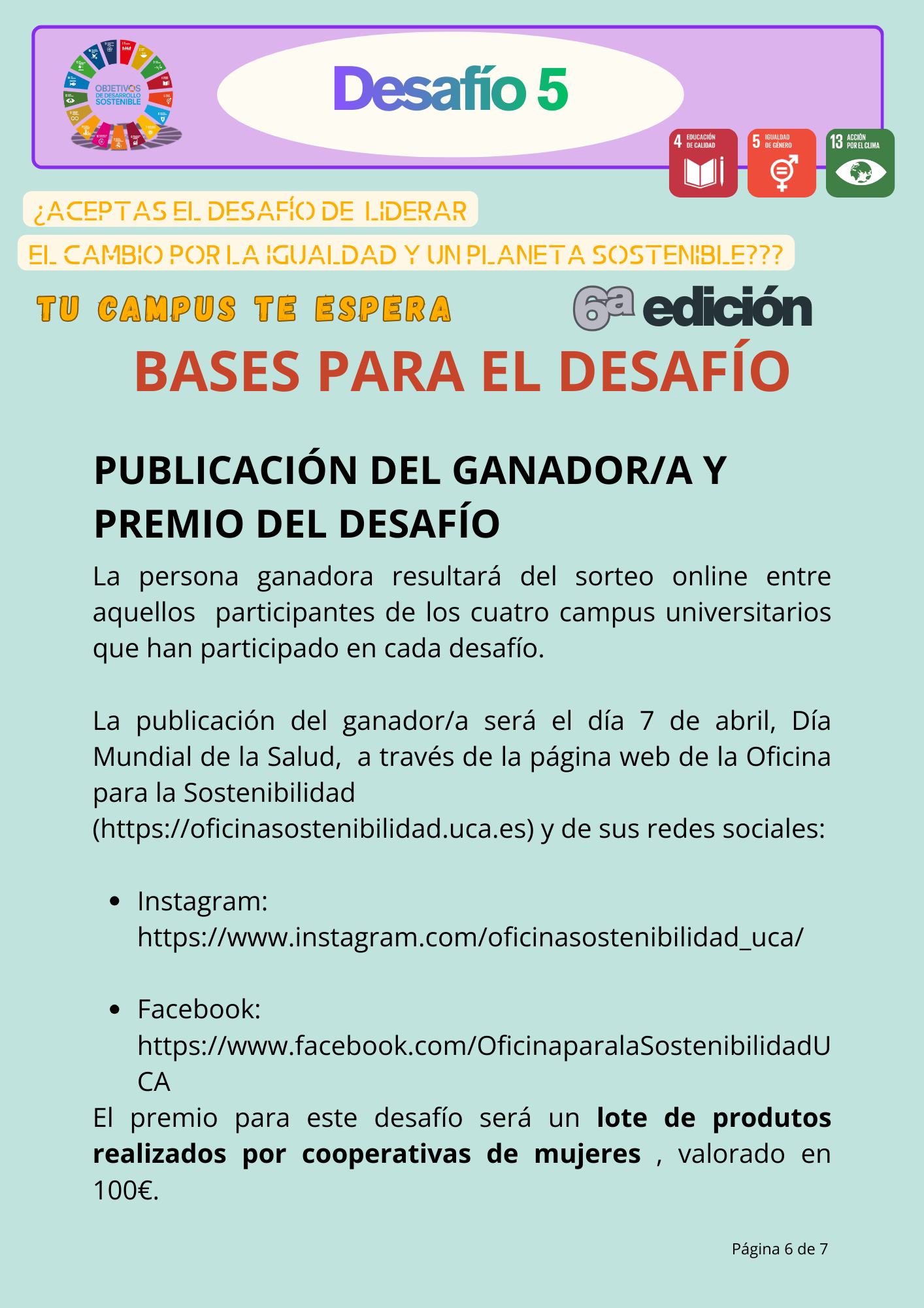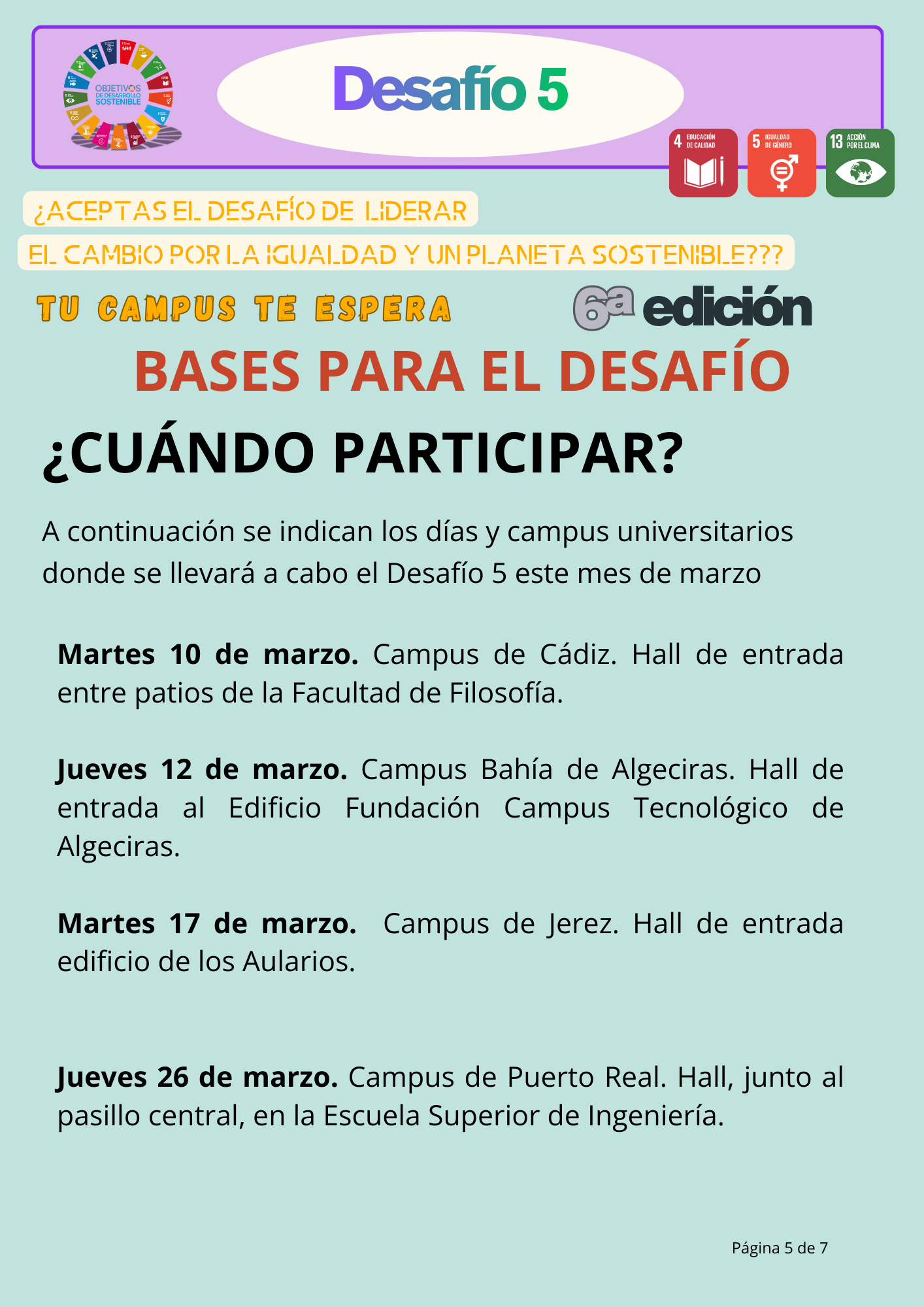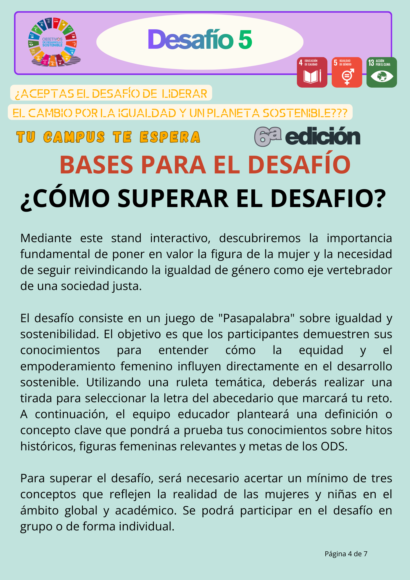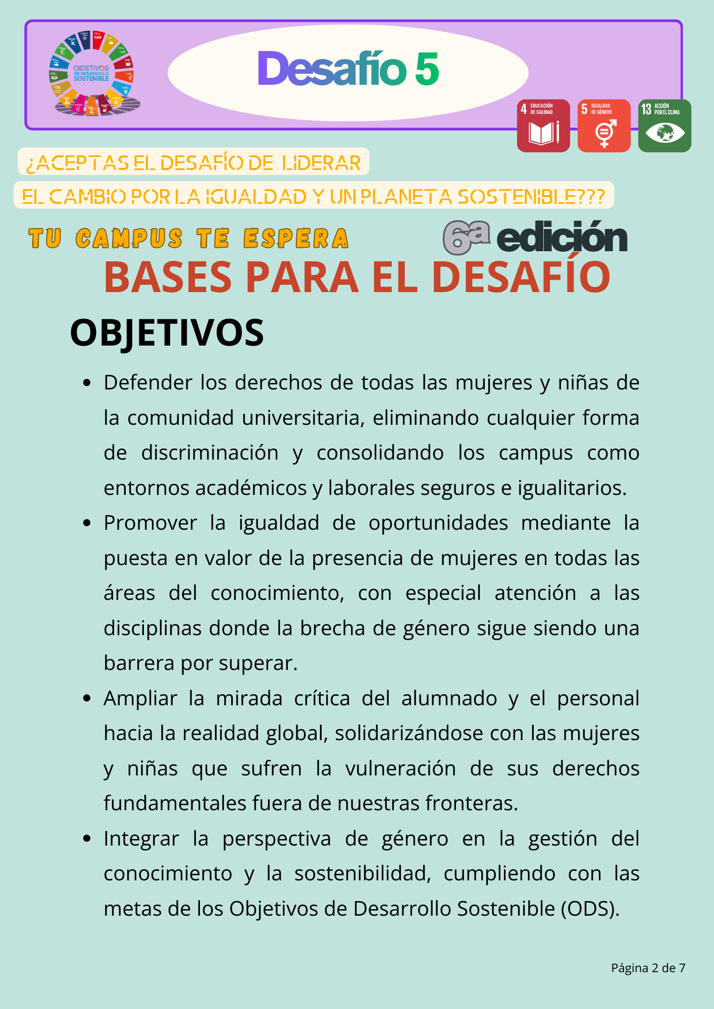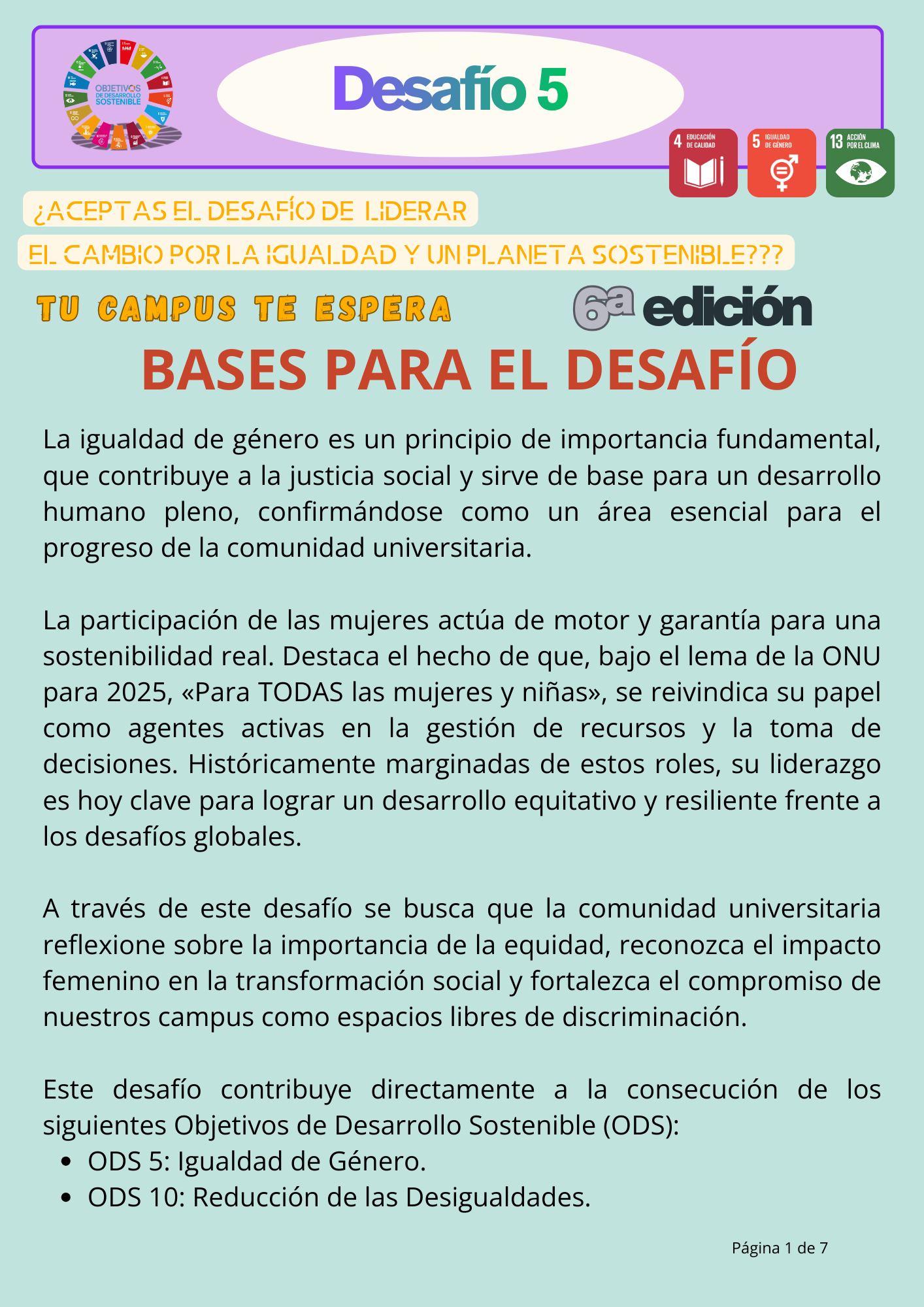 DESAFÍO 5. ¿Aceptas el desafío de liderar el cambio por la igualdad y un planeta sostenible?